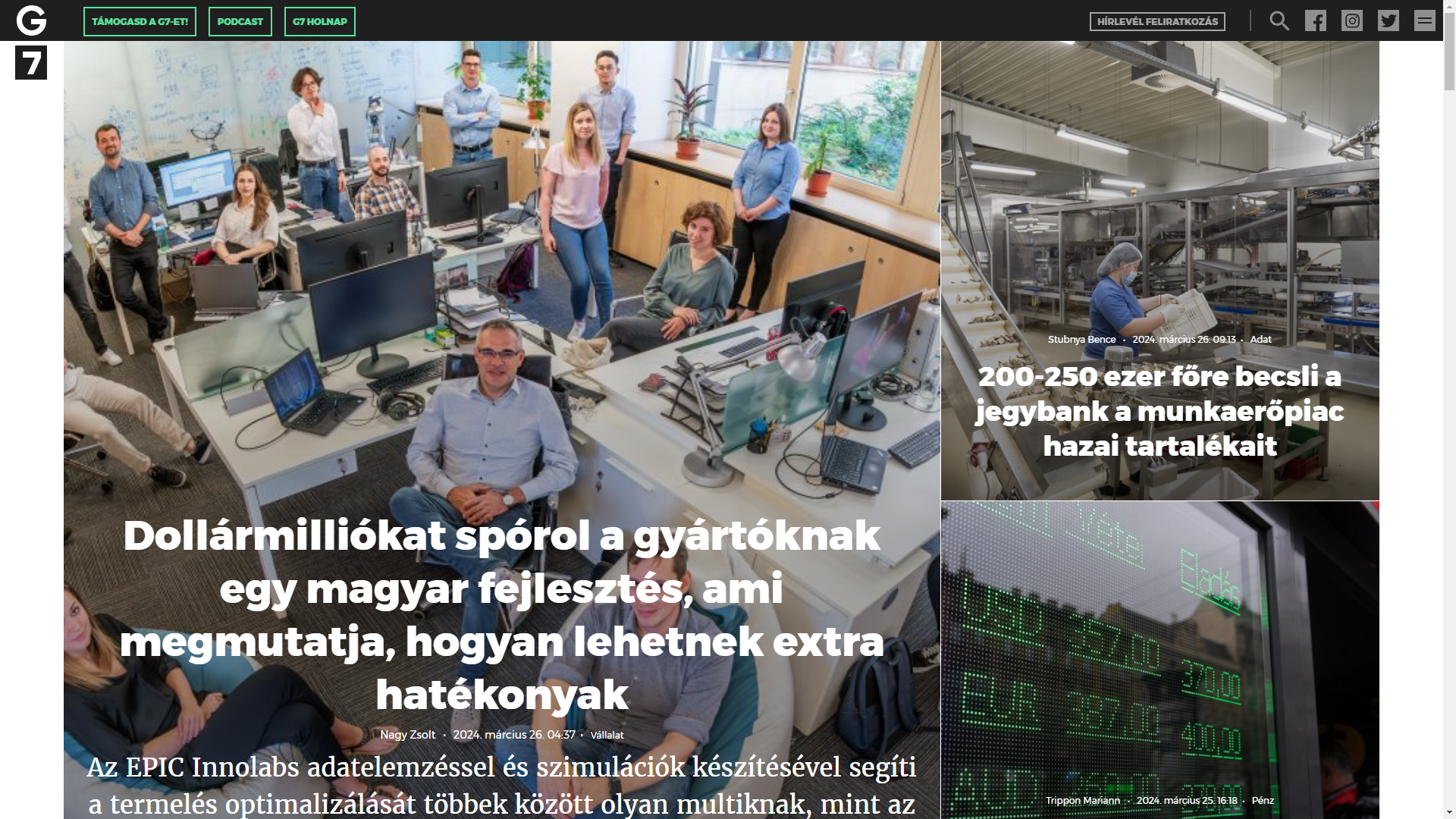 The G7.hu article talks about the founding of EPIC InnoLabs, its projects, its business partners and how it is not often that the scientific experience of a research institute is embodied in a company that undertakes industry projects.
