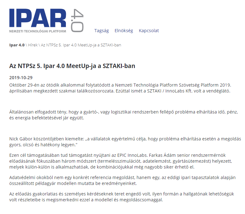 Az NTPSz 5. Ipar 4.0 MeetUp-ja a SZTAKI-ban