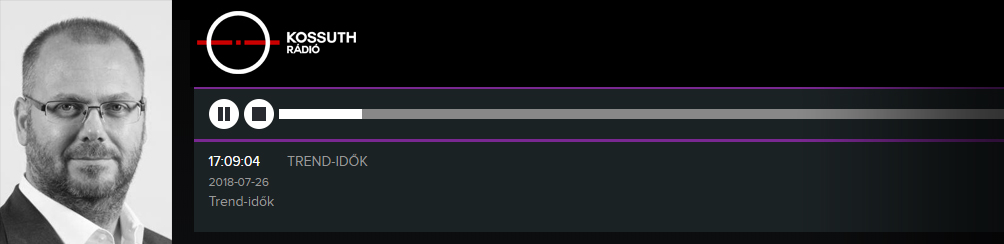 Nick Gábor, az Ipar 4.0 Kutatási és Innovációs Kiválósági Központ tudományos segédmunkatársa Ipar 4.0-ról, ipari innovációról és a gazdaság digitalizációjáról beszélt a Kossuth Rádió Trend-Idők című magazinműsorának 2018. július 26-i adásában.